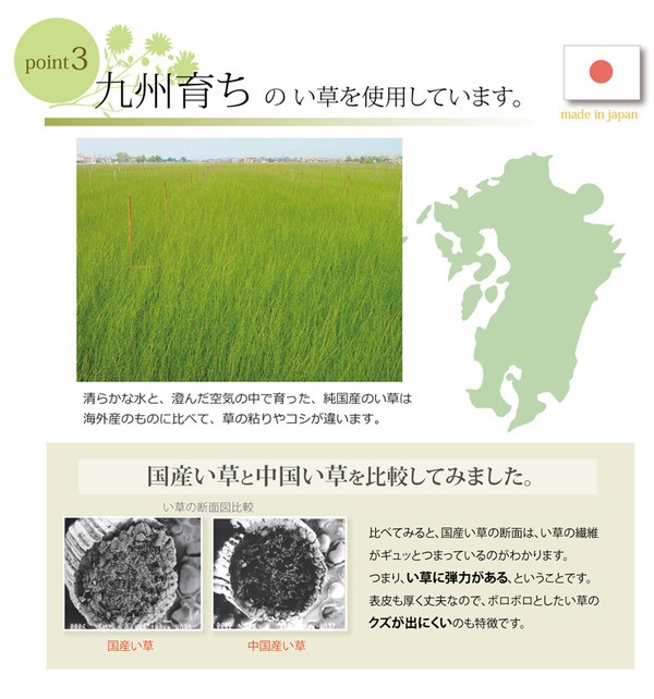 【素材】側地=い草(九州産)※メセキ織 中材=低反発ウレタンチップ