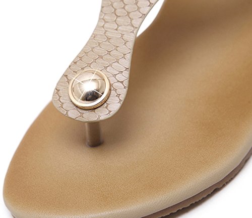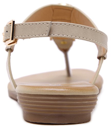 Binding : Apparel Product Description This comfy va va voom SUMMER GLITTER GOLD DECO FLAT THONG SANDALS, handmade of selected manmade leather and glitter golden rivets/ buckles with soft lining and gum rubber sole, has glamour to help you handle most of occasions. The BEST choice for your vacation and a gift selection for your close friend as well. 3 colors: black and nude.
