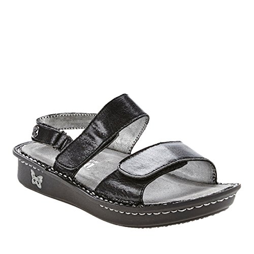 Set your style free with the Alegria Verona sandal. The leopard-print patent leather or patent leather upper of this women's flip flop with a chunky square stone inspired by tones of the Southwest for a fun look you'll love; three adjustable straps with hook-and-loop closures ensure the perfect fit. The leather-covered latex and memory foam footbed lends cushioned comfort even if you're on your feet for hours. The Alegria Carina women's comfort shoe has a lightweight biodegradable rocker sole with a flat heel that offers stability as it puts a spring in your step.Feature