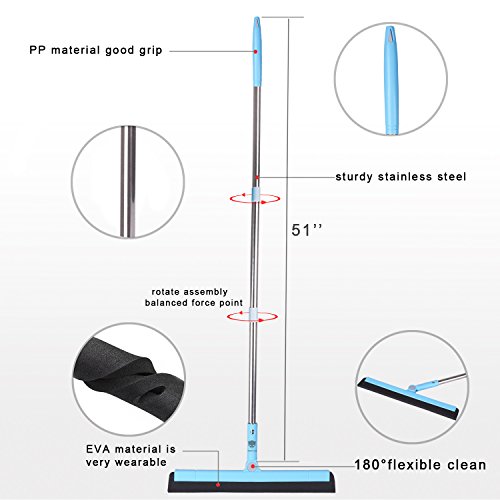 - DIFFERENT ANGLE CLEAN: 180° flexible squeegee head can easily for cleaning different angles. More convenient and effective than a normal broom during sweeping, they will never scratch furniture