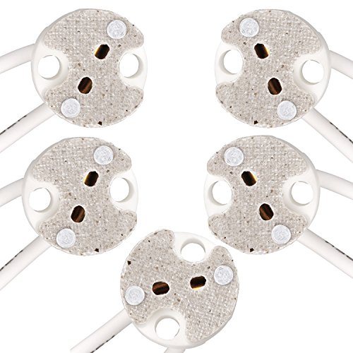 5pcs Pack Mini Bi-Pin Socket up to 75 Watts Ceramic Body with Mica Covers for Light Bulbs with Base GU5.3, G4, MR11, MR16