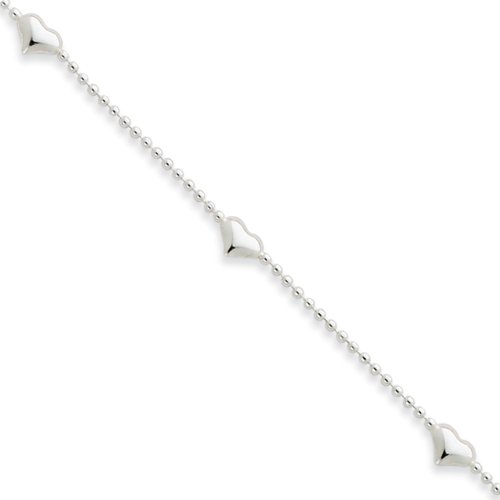 Want to draw more attention to your legs, try an eye-catching ankle bracelet that adds unexpected shimmer guaranteed to turn heads. This one features a 1mm width, 10-inch long bead chain accented with 5mm puffed hearts that is made from polished sterling silver and closes with a lobster claw clasp.Feature