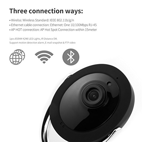 ♥ Quick and easy setup. Wireless network connection. No complicated wiring. Infrared Night Vision: Automatically turn on in low light and in darkness. Mobile Devices: Support remote viewing on mobile devices. iPhone/iPad/Android OS supported.