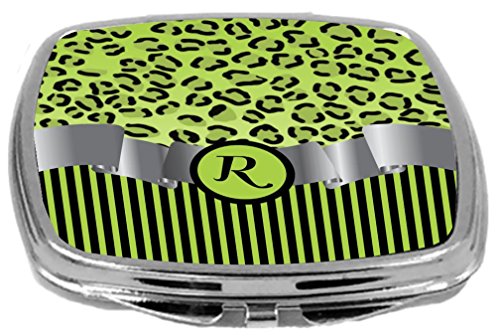 Rikki Knight Compact Mirror, Letter r Initial Lime Green Leopard Stripes Monogram