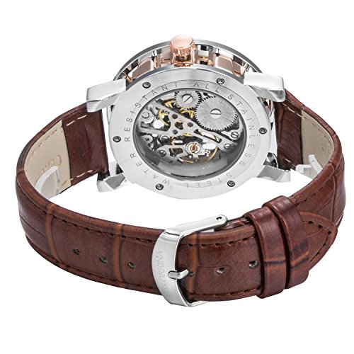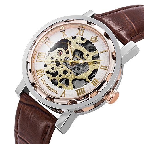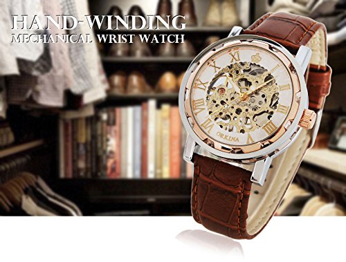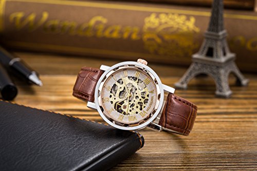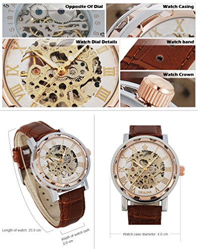 GuTe Mechanical GuTe출품 스켈리턴 스팀 펑크 남녀 작고 예쁘장스럽 스타일리시 가죽 밴드 상품 캐주얼 앤틱풍 빈티지 로즈 골드에 화이트 태엽 손목시계