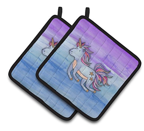 Caroline's Treasures BB7433PTHD Blue Unicorn Watercolor Decorated Pot Holder, 7.5" x 7.5", Multicolor