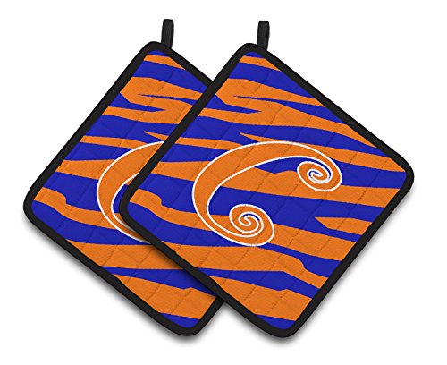 Caroline's Treasures Monogram Initial C Tiger Stripe Blue & Orange Pair of Pot Holders CJ1036-CPTHD, 7.5HX7.5W, Multicolor