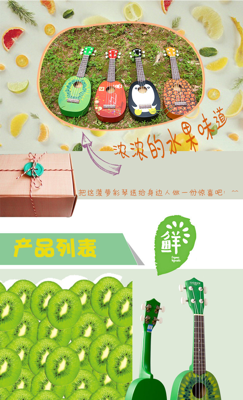 󰄬彩色卡通西瓜乌克丽丽ukulele夏威夷四弦小吉他菠萝尤克里里21寸