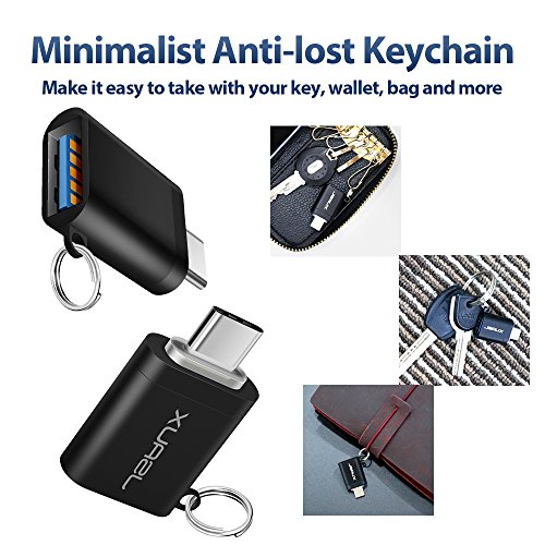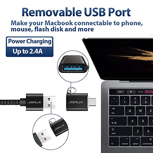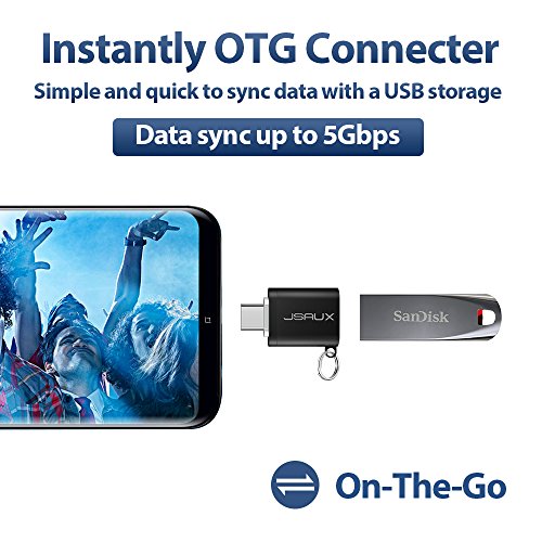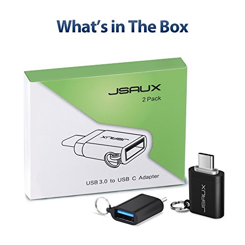 USB C to USB 3.0 Adapter, JSAUX USB C (Male) to USB A (Female) Convert Connector with Keyring for Samsung Galaxy S8 New Macbook Pro Google Pixel XL Nexus 5X 6P LG G5 G6 V20 and More(Black 2 Pack)