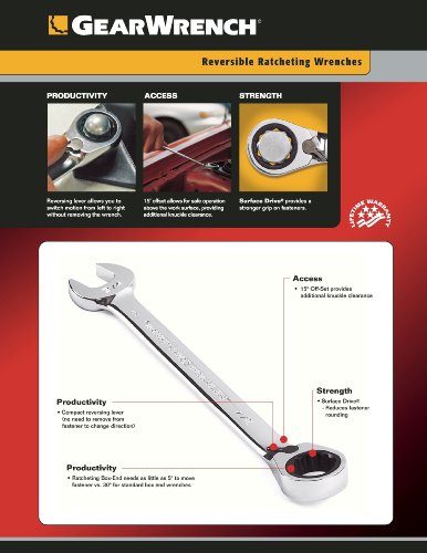 - Ratcheting box-end needs as little as 5-Degree to move fastener VS. 30-Degree for standard box end wrenches