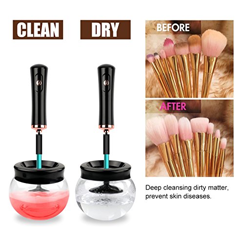 - 【Deeply Clean & Dry Makeup Brushes in Seconds】This professional make up brush cleaner and dryer machine spins 360° to quickly and thoroughly clean and dry your brushes in seconds,your makeup brushes are immediately ready to re-use. Needn't to leave it in air for natural dry anymore. You immediately get brand new brushes for instant use. It saves your time, money and energy.