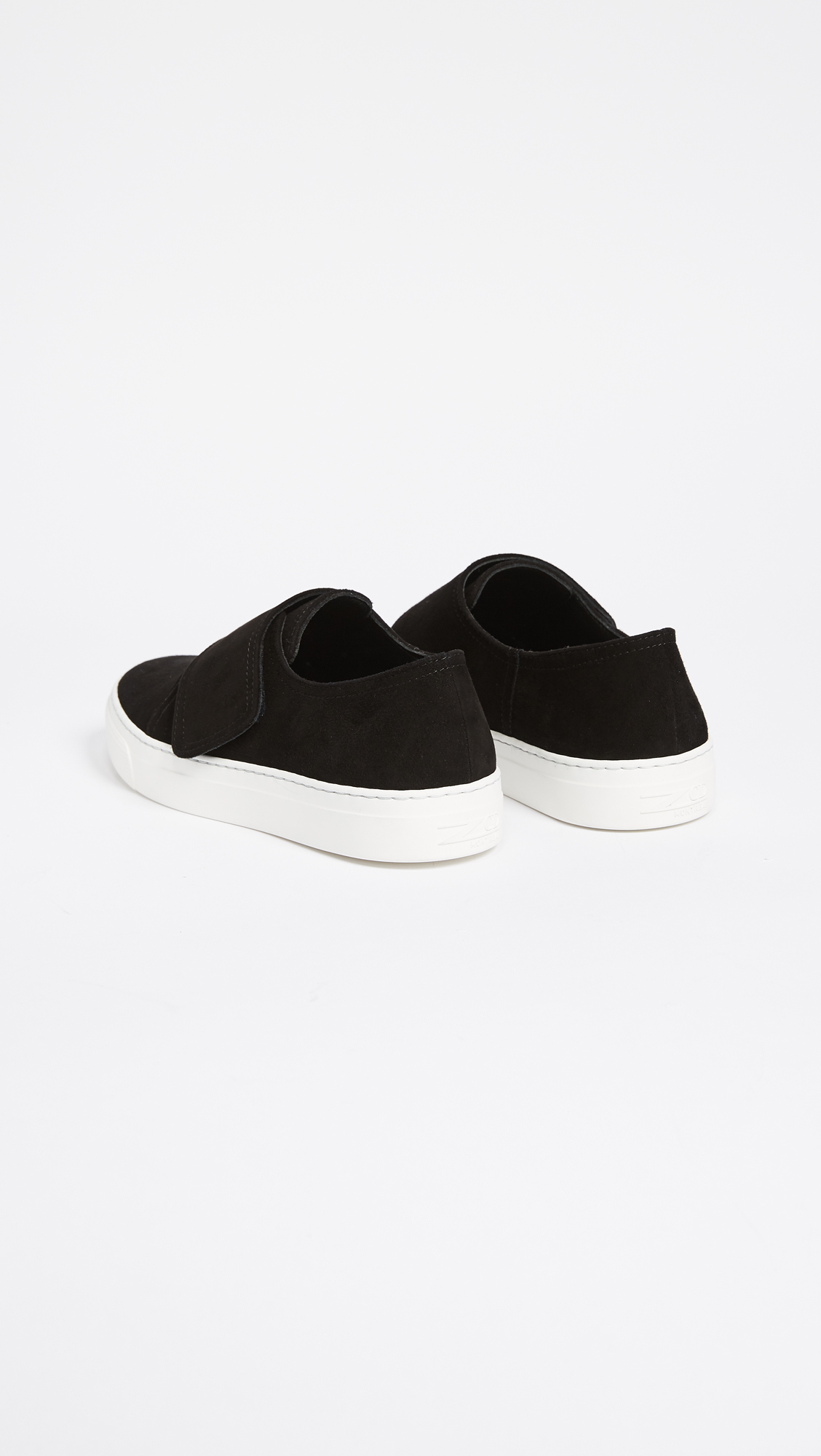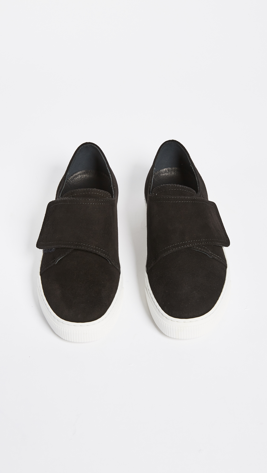 Soft suede ZCD Montreal slip-on sneakers styled with a wide Velcro strap. Padded footbed and rubber sole.Leather: Lambskin.Made in Italy.This item cannot be gift-boxed.