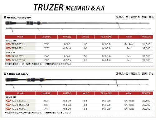 메이저 크래프트 스피닝 로드 TRUZER 《도루자이토린구》 볼락(메바루) 모델 TZS-S772L