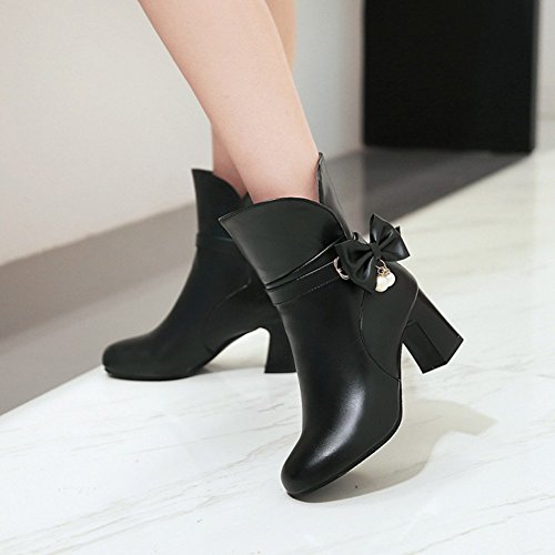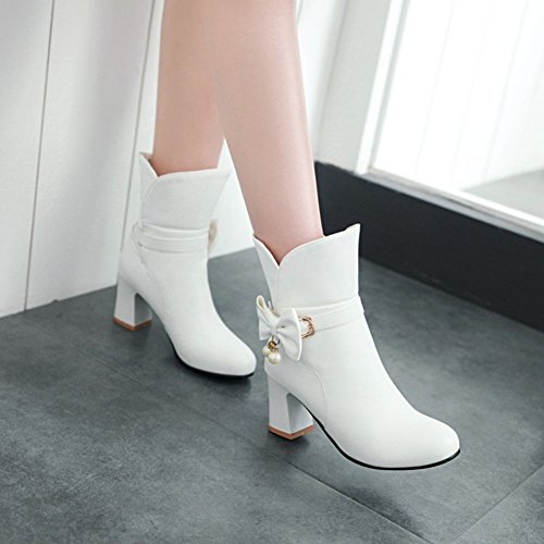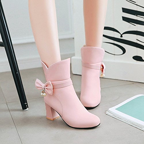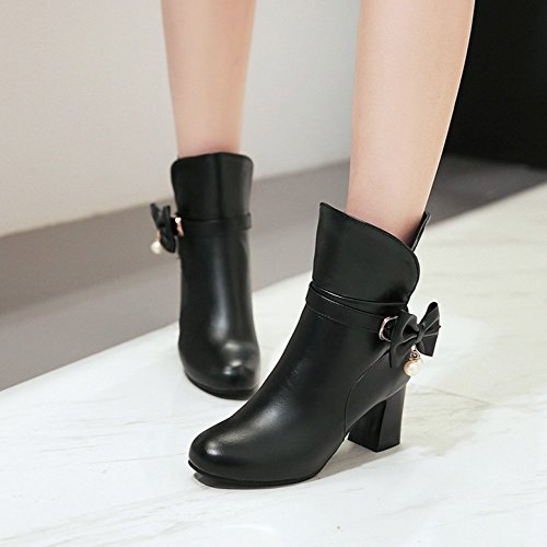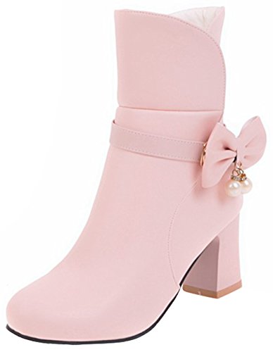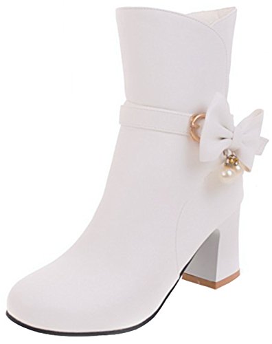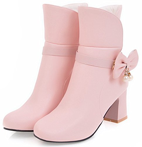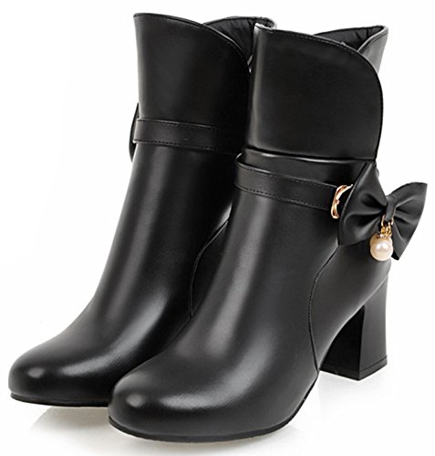 (Mofri)/Women's/Boots/DIRECT FROM USA/Mofri Women's Sweet Bow Buckle Strap Block Medium Heel Ankle Booties Round Toe Pull On Short Boots