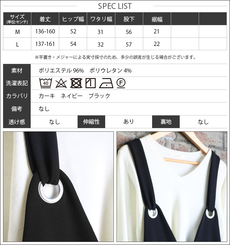 M:着丈 136-160cm ヒップ幅 52cm ワタリ幅 31cm 股下 56cm 裾幅 21cm