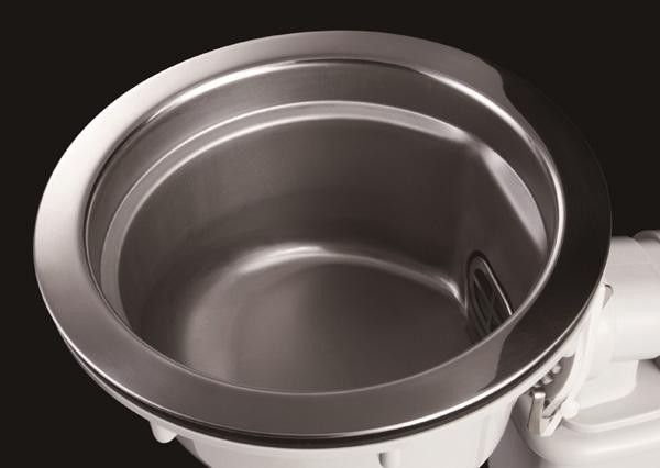 排水口まわりはオールステンレス製のためヌメリが付きにくくお手入れもラクラク!従来の深型トラップと比べるとトラップが邪魔にならないので収納力アップ!ゴミカゴも浅型になりゴミを溜めないので汚れにくく清掃性アップ!排水パイプとの接続部の臭気を防ぐ、防臭キャップ付き。 |