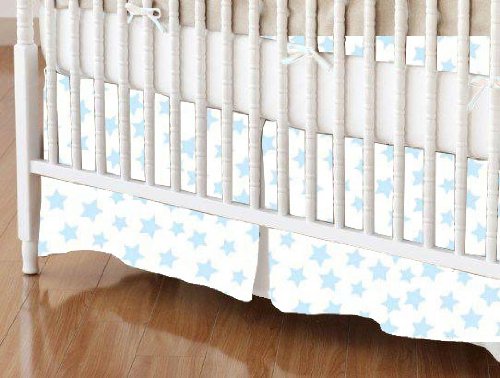 -. Title : SheetWorld - Crib Skirt (28 x 52) - Pastel Blue Stars Woven - Made In USA