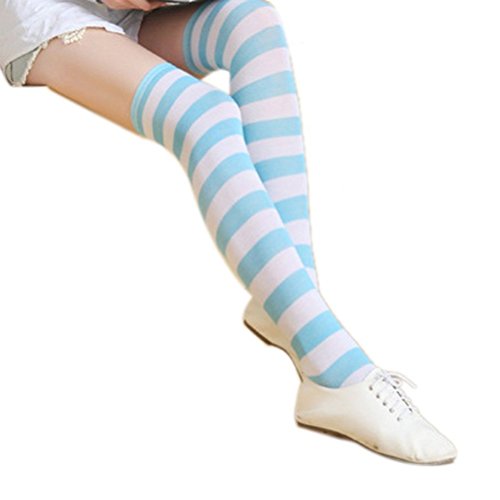 -. Title : Tinksky Thigh High Over the Knee Stocking Socks Blue White Stripe Long Leg Warmers