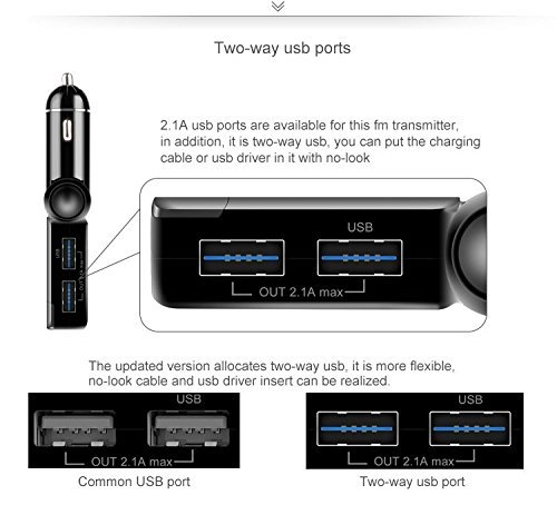 Multifunctional Design: Wireless Bluetooth in-car Multifunction FM Transmitter enables you to do Hands-free calls, enjoy clear music, GPS voice navigation, charge your device. Better for empty channel.