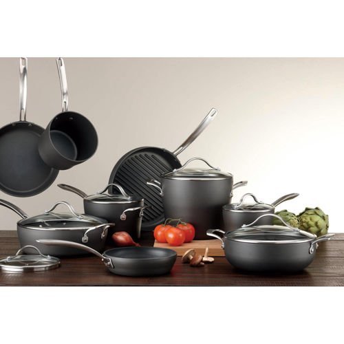 -. Title : Kirkland SignatureTM 15-piece Hard-Anodized Aluminum Cookware Set with 18/10 Stainless Steel Handles and Tempered Glass Lids