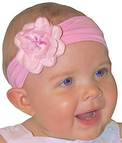 Baby Girls Flower Headband with Rhinestone Madeline Collection Fits Newborn to 12 Months