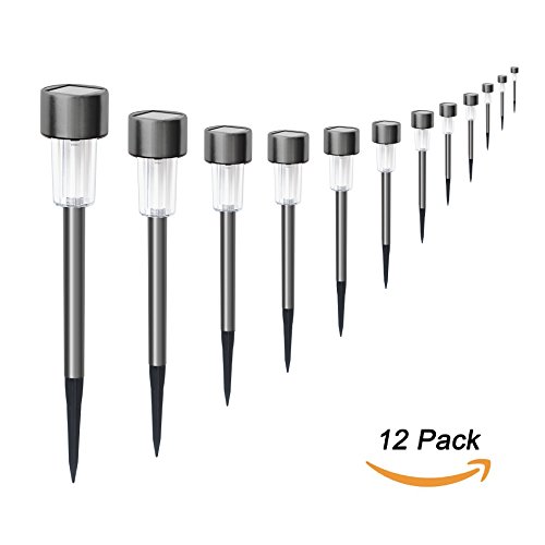 Sunwind 12-Pack Solar-Powered Stainless Steel Led Pathway Garden Lights for Outdoor Décor Lawn,Patio,Yard,Walkway (Gunmetal)