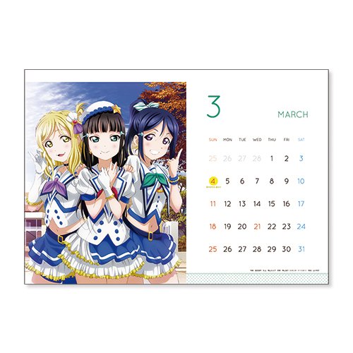 It is a calendar using illustration of members of Aqours who colored the magazine of Dengeki G's magazine.