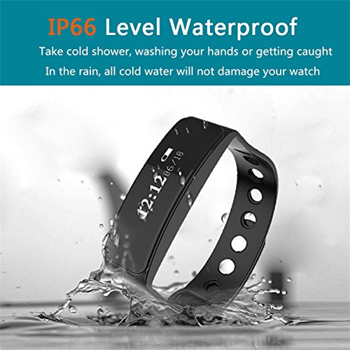 Fitness Tracker, Toprime Waterproof Smart Bluetooth 4.0 Activity Tracker, Health Smartwatch Wristband Pedometer with Sleep Monitor,Step Tracker,Calorie Counter for Android and iOS, Black