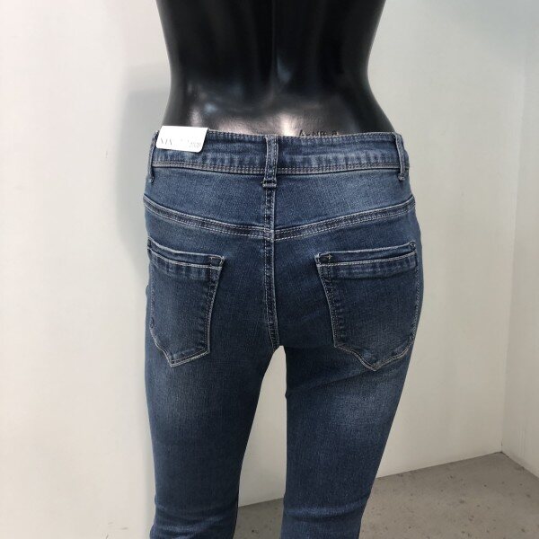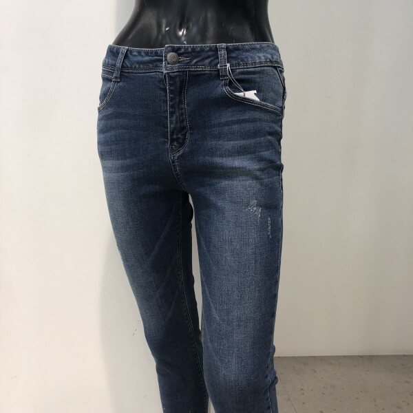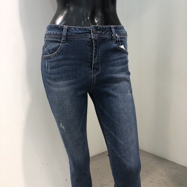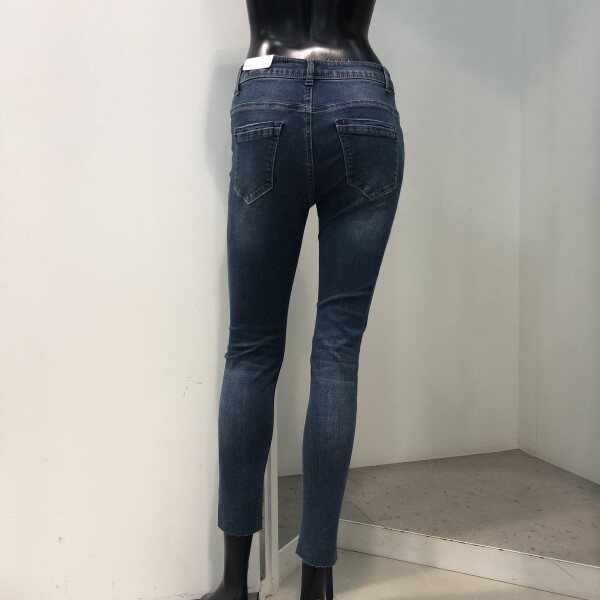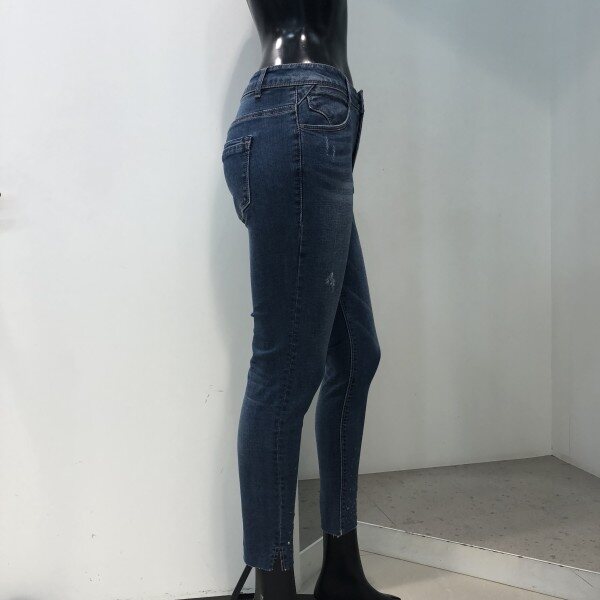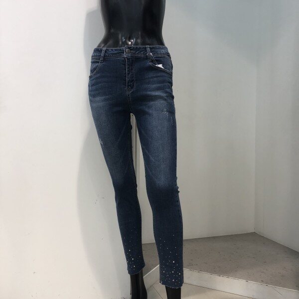 허리에서부터 밑단까지 다리라인이 그대로 드러나는 실루엣으로 전 연령층이 대중성있게 입는 핏입니다. 타이트한 착용감을 보완하기 위해 스트레치 소재를 사용, 활동성을 강화시킨 제품입니다.바닥과 슬럽에 하얗게 올라오는 브러쉬가 특징인 미디움 톤의 인디고 데님으로, 밑단의 슬릿과 다양한 핫픽스의 디테일이 가미된 트렌디한 디자인 입니다.