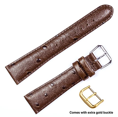 -. Title : deBeer brand Ostrich Grain Watch Band (Silver & Gold Buckle) - Brown 18mm