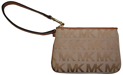 MK signature jacquard fabric with leather trim. 2 slip pockets inside. Fully lined with Michael Kors signature fabric. 6" (L) x 4" (H).