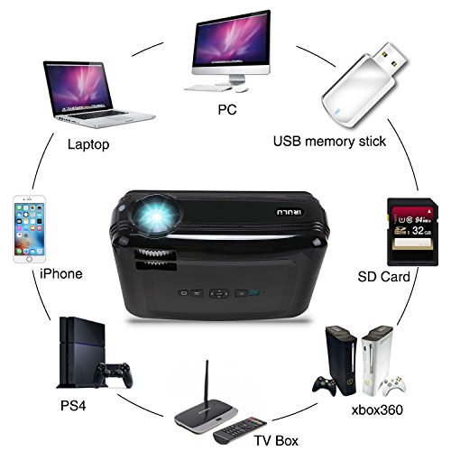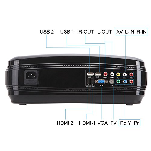 【Rich Interfaces】: Support HDMI/VGA/AV/USB. Dual HDMI & USB ports design makes it more convenient. Multimedia support photo, music,movie,e-book. PLEASE NOTE you need a wireless HDMI dongle(not included) to connect projector with smartphone and tablet.