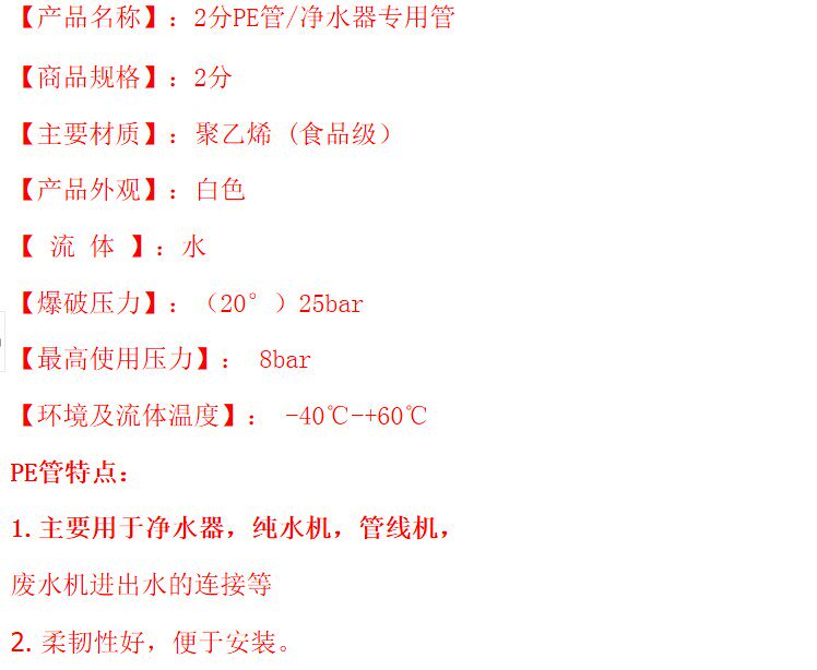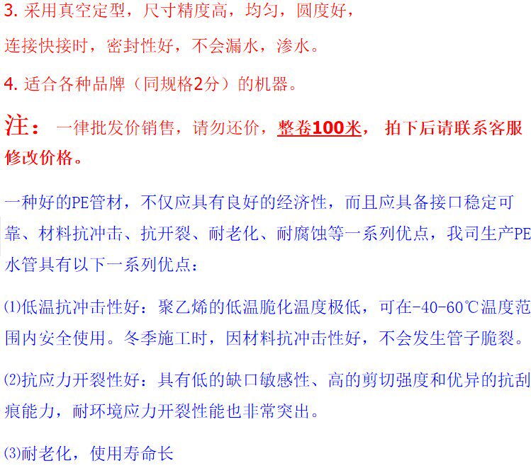 温馨提示:亲 特价促销CKK二分/三分PE软管,多种规格,多种选择 亲可以根据自己的需要!