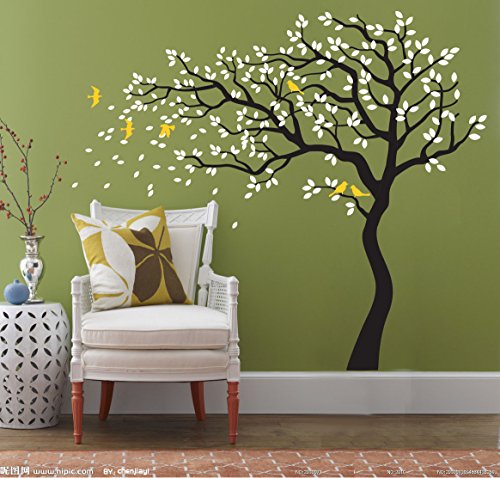 -. Title : MAFENT(TM)Giant Family Tree Wall Decal White Blossom Tree Blowing in the Wind with Birds Vinly Wall Sticker for Home Decor