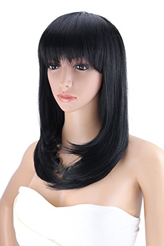 Kalyss Women's Wig Long Straight Layers Black Synthetic Hair wigs for Women (Black 1B)