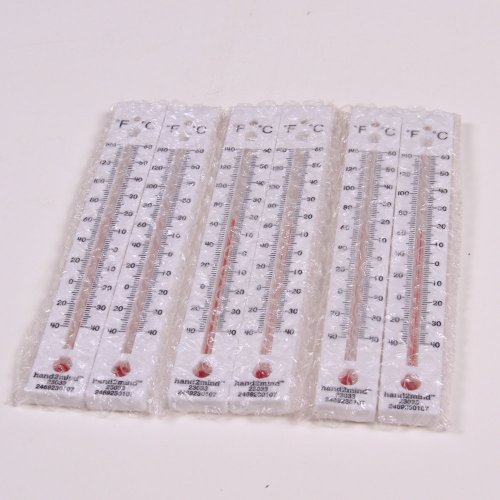 [Description] Set of 10 Thermometers are spirit-filled and mercury-free Recessed glass tube for safe classroom use Thermometers measure 6 ¾`` in length Features dual-scale temperature readings from -22°F to 240°F and -30°C to 120°C