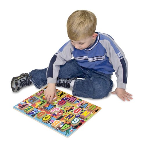 -. Artist : Melissa & Doug -. Binding : Toy -. Brand : Melissa & Doug -. Color : multicolor -. Department : ToysAndShoes -. EAN : 0000772038331 -. Feature : Made using the highest quality materials / Tested to be safe and durable / Great fun for your baby and child / Pieces stand on their own for additional play / Thick puzzle pieces are easy for small hands / Full-color pictures beneath each piece / This unique puzzle promotes early learning vocabulary as well as matching skills / Recommended Age Range 3 Years and up -. IsAdultProduct : 0 -. IsAutographed : 0 -. IsMemorabilia : 0 -. ItemPartNumber : 3833 -. Label : Melissa & Doug -. Manufacturer : Melissa & Doug -. Model : 3833 -. MPN : 3833 -. NumberOfItems : 1 -. PackageQuantity : 1 -. PartNumber : 3833 -. ProductGroup : Toy -. ProductTypeName : TOYS_AND_GAMES -. Publisher : Melissa & Doug -. ReleaseDate : 2006-06-12 -. Size : Puzzles -. Studio : Melissa & Doug -. Title : Melissa & Doug Jumbo ABC Chunky Puzzle -. UPC : 789264268318 -. Warranty : Please check with the manufacturer regarding warranty and support issues.