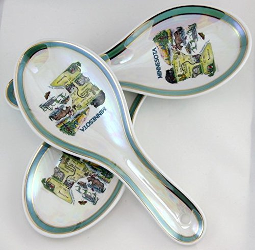Minnesota State Map Pearl Souvenir Collectible Spoon Rest agc