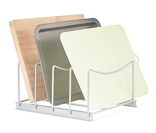GOOD SOLUTION FOR KITCHENWARE: Simple and practical design, the kitchen organizer rack is special for kitchen supplies such as pot lid, cutting board, cookie sheet...etc.