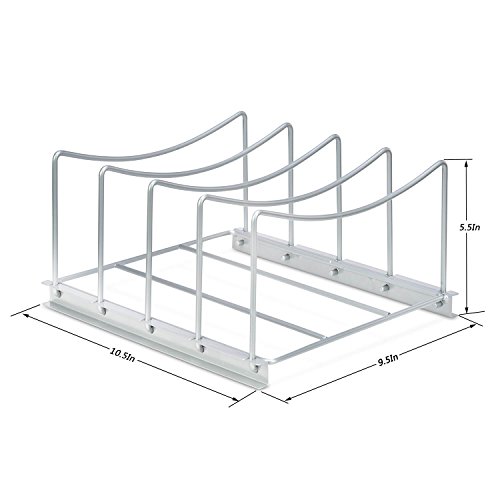 ProAid Pot and Pan Organizer Rack 4 Compartments Design Lid Pan Rack Organizer Kitchen Cabinet Pantry Rack and Cookware Holder, Silver