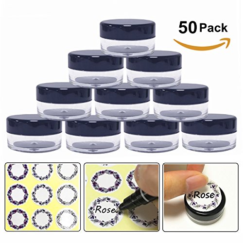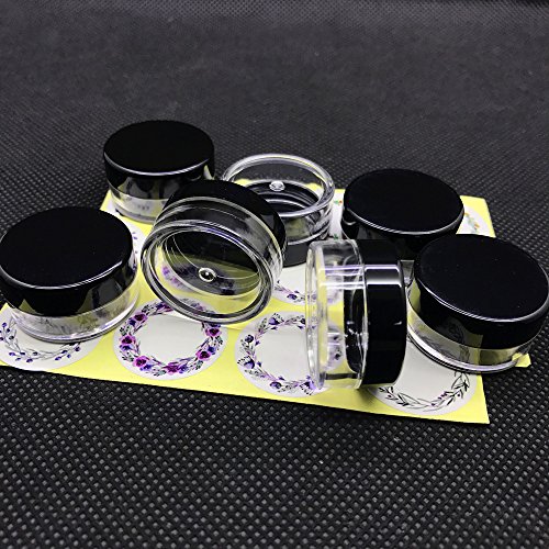 (50 Pieces, Black Lid) 5gram/5ml Round Clear Container Jars with Black Screw Cap Lids for Lip Balms, Makeup Samples Makeup Eye Shadow Nails Powder...