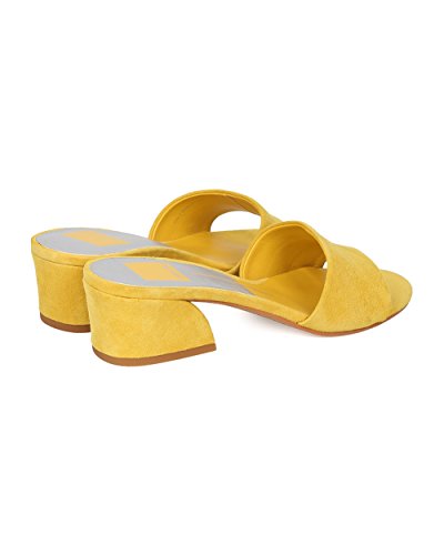 Product Description These suede slides are made with an open toe, single band construction and single sole. Also made with a low block heel and easy to slip on design. 0