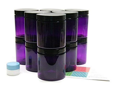 Purple 8 oz Plastic Jars with Black Lids (12 pk) with Mini Jar - PET Round Refillable Containers