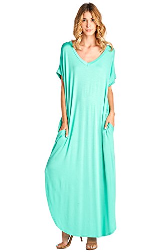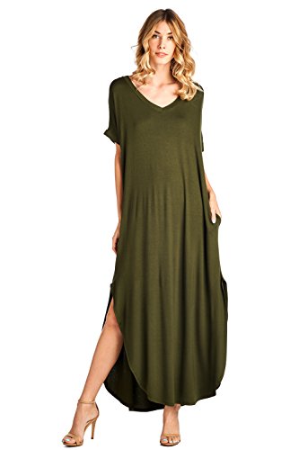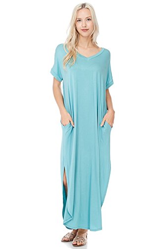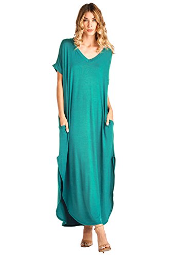 Made from soft rayon, this is our favorite dress featuring a v-neck, short sleeves, and maxi silhouette.