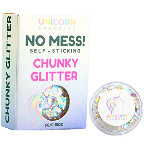 Iridescent Chunky Glitter | Self-Sticking, Aloe Vera Based, No Glitter Primer Needed | Cosmetic Glitter Gel for Face and Body | by Unicorn Sparkles | Events, Festival, Party & Rave Makeup