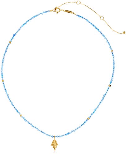 Faceted Blue Lace Agate stones make this 14 inch choker with a spring ring clasp that adjusts up to 3 inches. Features 18kt gold plated Hamsa charm.