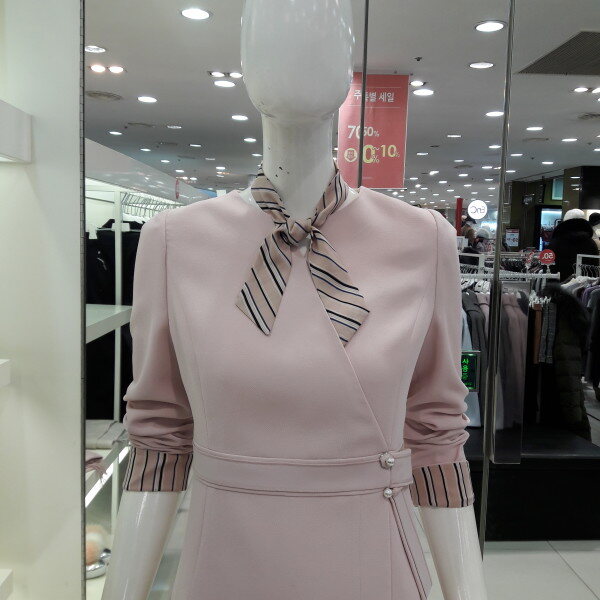18년 봄 화사한 H라인원피스입니다 소매배새과 여성스럽게 연출할수 있는 쁘띠스카프가 세련된 분위기구요 깔끔하게 떨어지는 핏이 단정하게 연출할수 있어요 지금부터 봄까지 착용할수 있어요