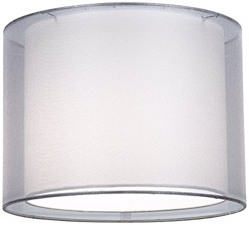 -. Feature : Outer shade is 12" across the top, 12" across the bottom, 9" high. / Inner shade is 10" across the top, 10" across the bottom, 8 1/2" high. / Double sheer drum lamp shade with hardback liner. / Sheer silver polyester fabric over clear styrene on outer shade; white polyester fabric inner shade. / The correct size harp is included free with this shade.