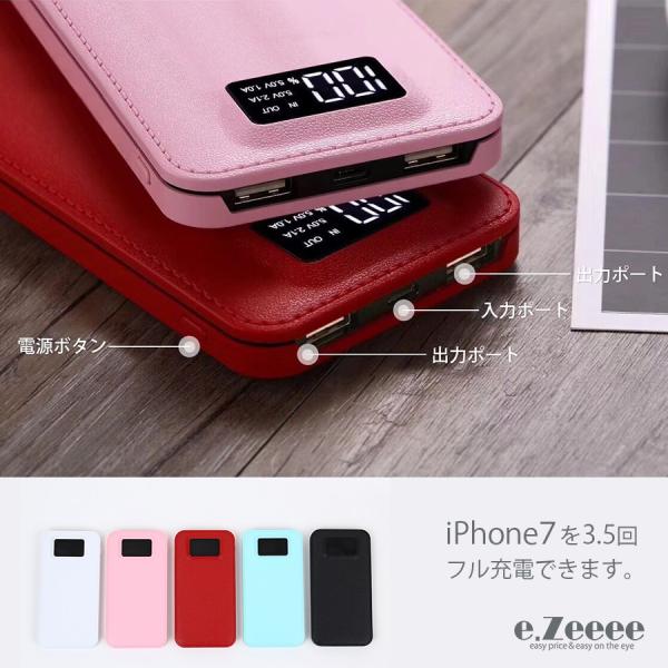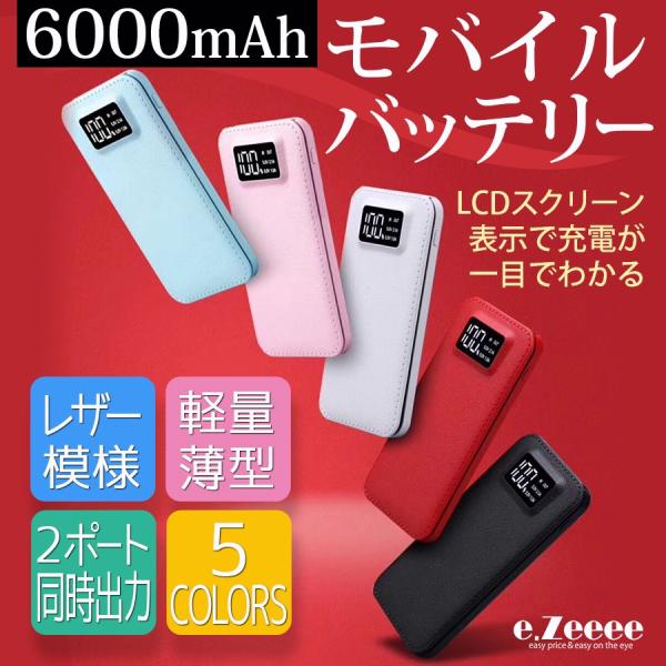 容量:6000mAhバッテリタイプ:リチウムポリマーバッテリー入力電圧:5V/2.0A出力電圧:5V/2.0A 5V/1.0Aサイズ:130*68*10mm本体重量:151gカラー:ホワイト ブラック ブルー ピンク レッド出力ポート:二つLCD電量残量表示スクリーン機能搭載