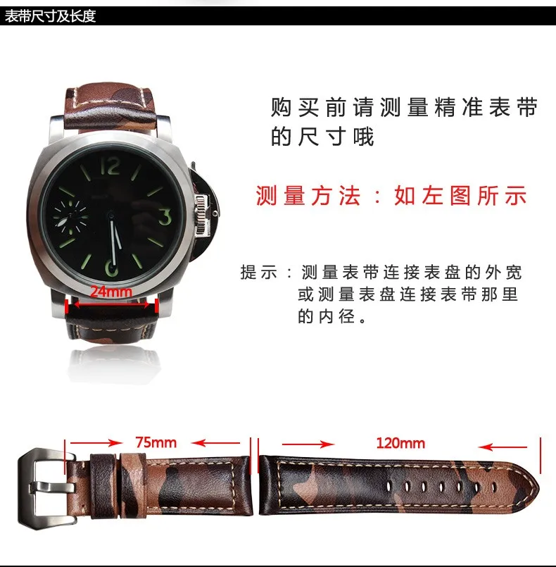 정품 가죽 팔찌 시계 스트랩 손목 손목 밴드 매력 위장 패턴 22 미리메터 24 미리메터 26 미리메터 시계 액세서리